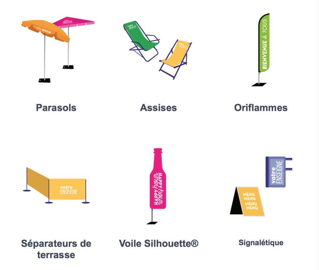 Oriflammes, transats, séparateurs de terrasse... Faites-nous confiance pour le retour des beaux jours !