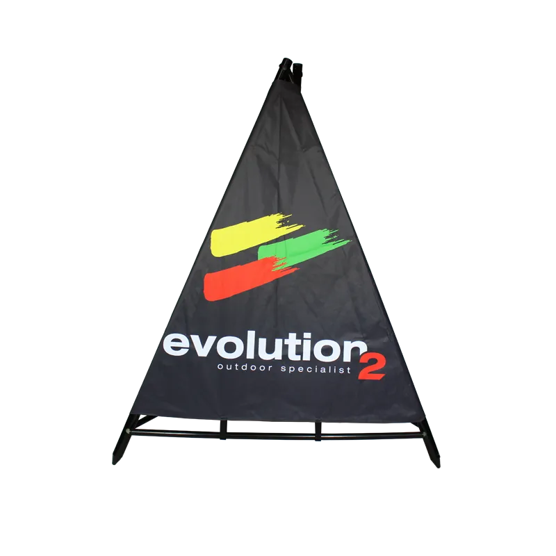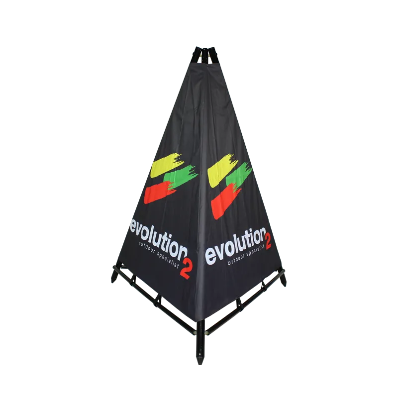 La balise tripode est un support de communication à trois faces pouvant être imprimé sur différents textiles ou PVC, en sérigraphie ou en numérique. Grâce à sa structure en polycarbonate emboitable triangulaire la rigidifiant, ce support de communication sera idéale pour matérialiser un chemin lors d’une course, un accès dans un Snow Park, ou encore pour promouvoir votre ville ou votre marque lors de différents événements. La balise tripode est posée au sol directement sur ses trois pieds, et elle aura des dimensions variables, avec une taille standard de 200 cm x 130 cm et des visuels qui pourront être inter-changés.