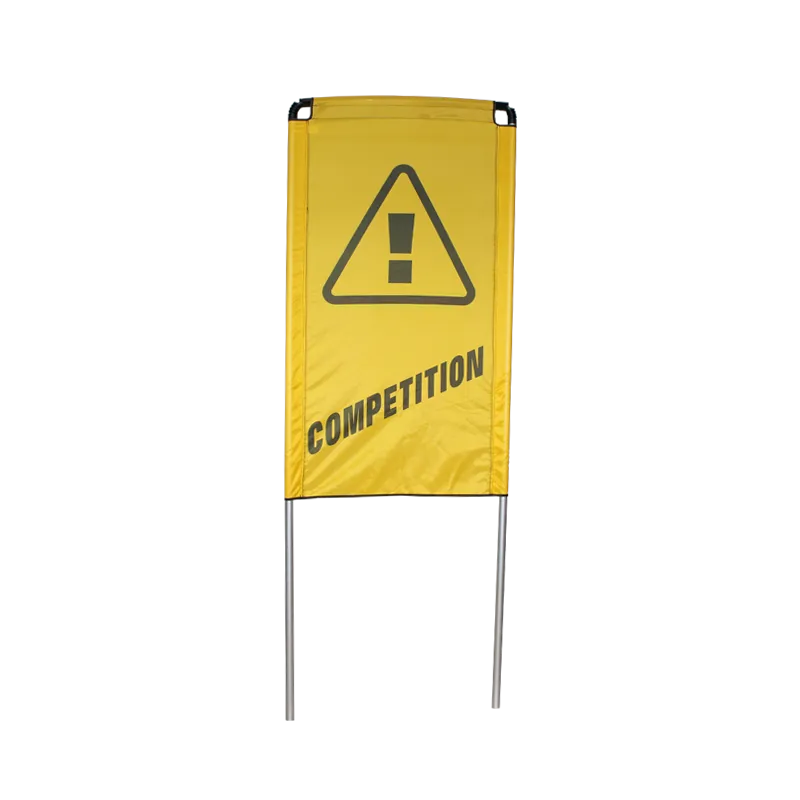 La banderole de porte de départ et arrivée à planter est un support de communication extérieur vertical pouvant être imprimé sur ses deux faces, sur PVC ou différents textiles.