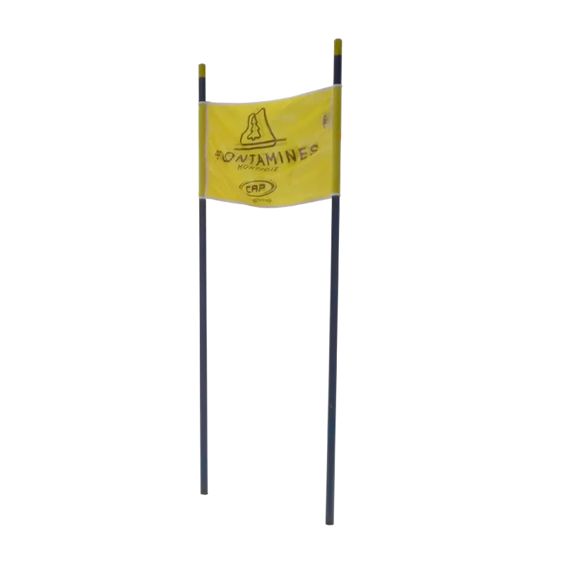 La banderole de porte de géant en maille ajourée à planter est un support de communication extérieur vertical pouvant être imprimé sur ses deux faces, sur de la maille ajourée, en sérigraphie, en impression numérique ou par sublimation. Grâce à sa structure en polycarbonate la rigidifiant, la banderole en maille ajourée sera idéale pour matérialiser le départ d’une course, ou encore pour promouvoir votre ville ou votre marque lors de différents événements. Pouvant être posée au sol par des pieds classiques ou plantée, la banderole en maille ajourée aura des dimensions variables, avec une taille standard du visuel de 0,75 m x 0,50 m, et avec des visuels qui pourront être inter-changés. Il est possible de la demander aux normes de la Fédération Internationale de Ski (FIS).