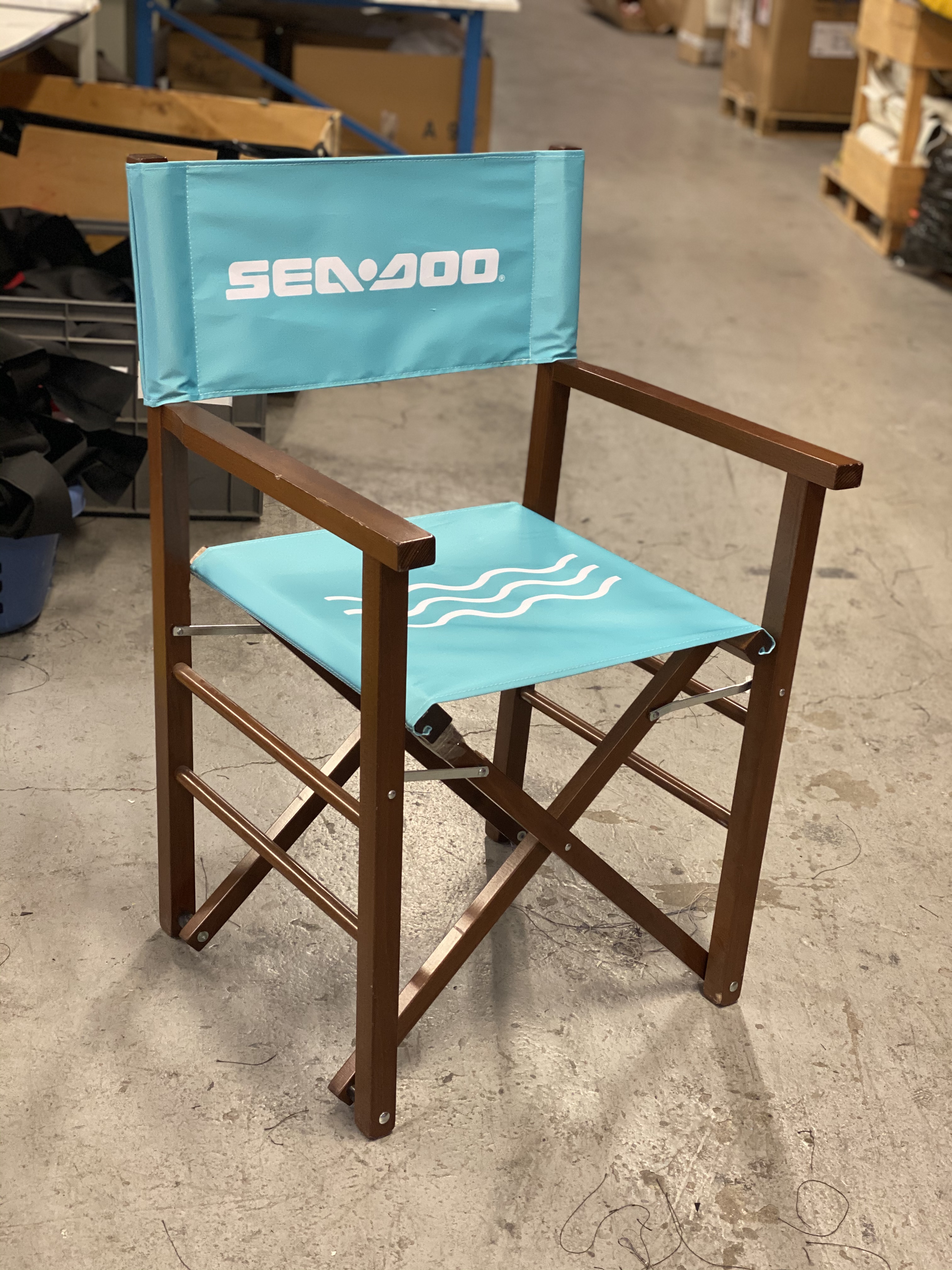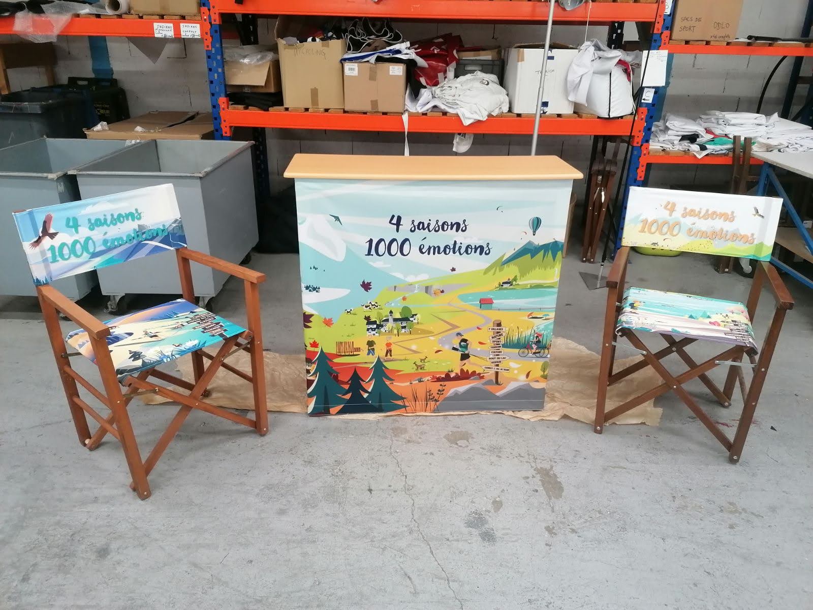 La chaise metteur en scène est un élément de mobilier pouvant servir de support de communication, et entièrement personnalisable par des visuels.