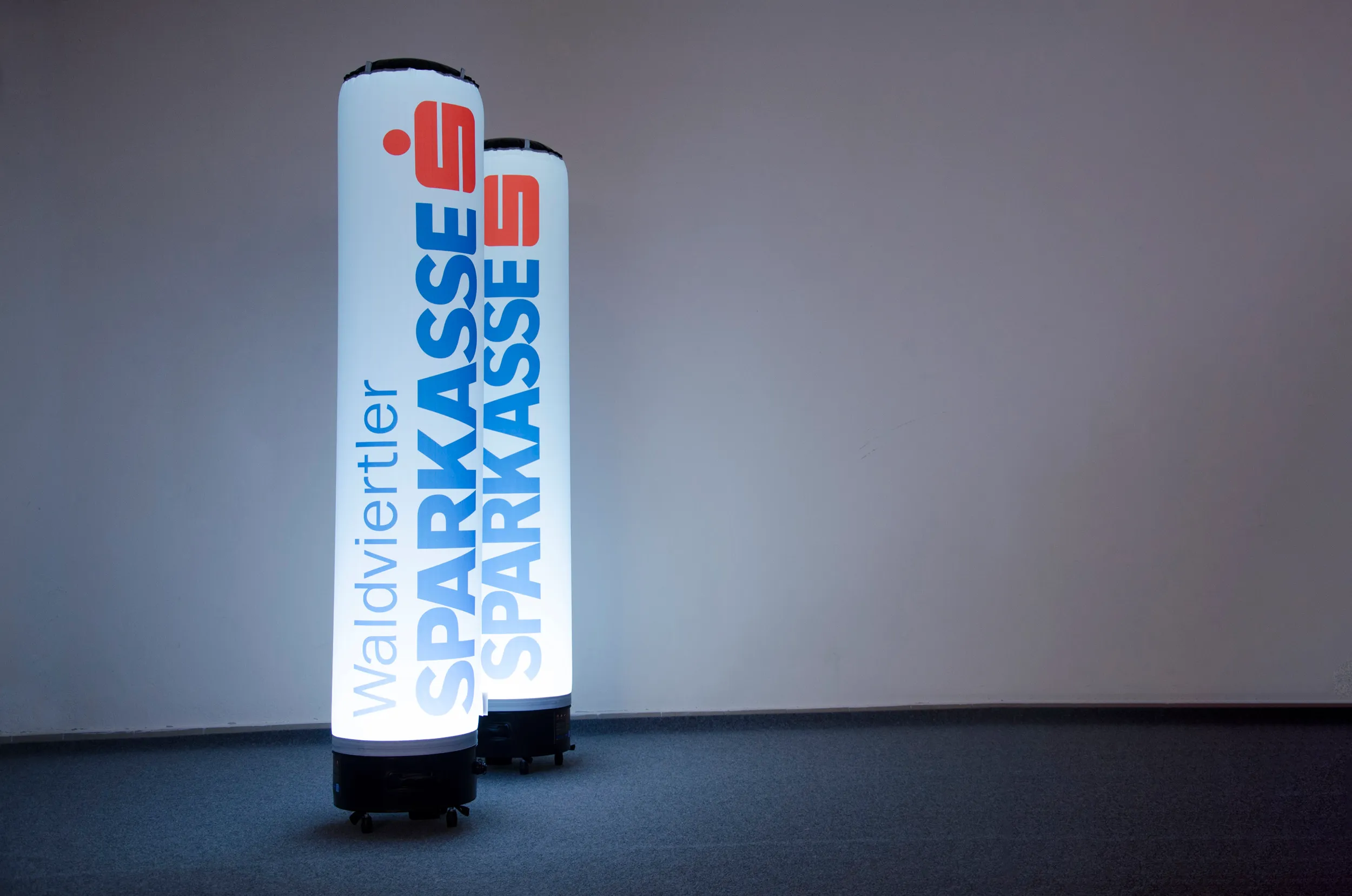 La colonne gonflable statique est un support de communication étanche qui possède une section de diamètre inférieur à celui des colonnes classiques en raison de sa pression interne plus élevée. Elle a une excellente résistance aux intempéries, une très bonne stabilité, aucun risque d’effondrement et aucun bruit de ventilateur.Les colonnes gonflables statiques sont disponibles dans de nombreuses tailles, toujours avec le même système de visuels fixés par fermeture éclair. Elle est composée d’une membrane interne et d’un habillage à vos couleurs, qui se changera rapidement.Facile d’installation, la colonne gonflable étanche pourra être personnalisée avec un éclairage interne et un socle à roulettes
