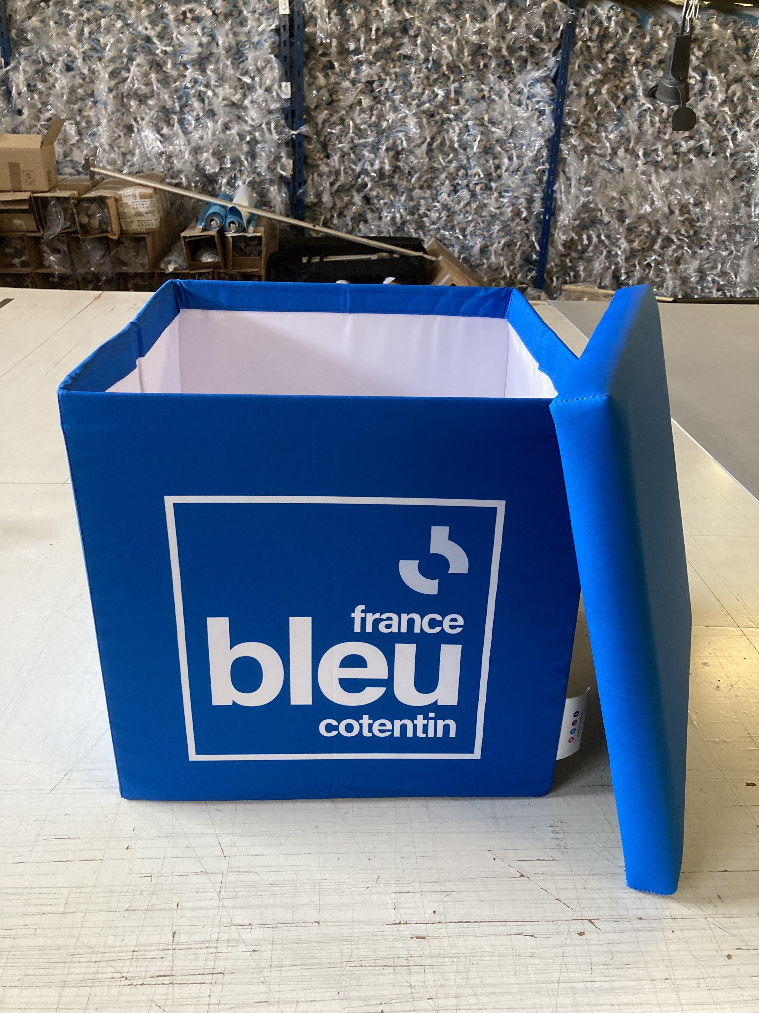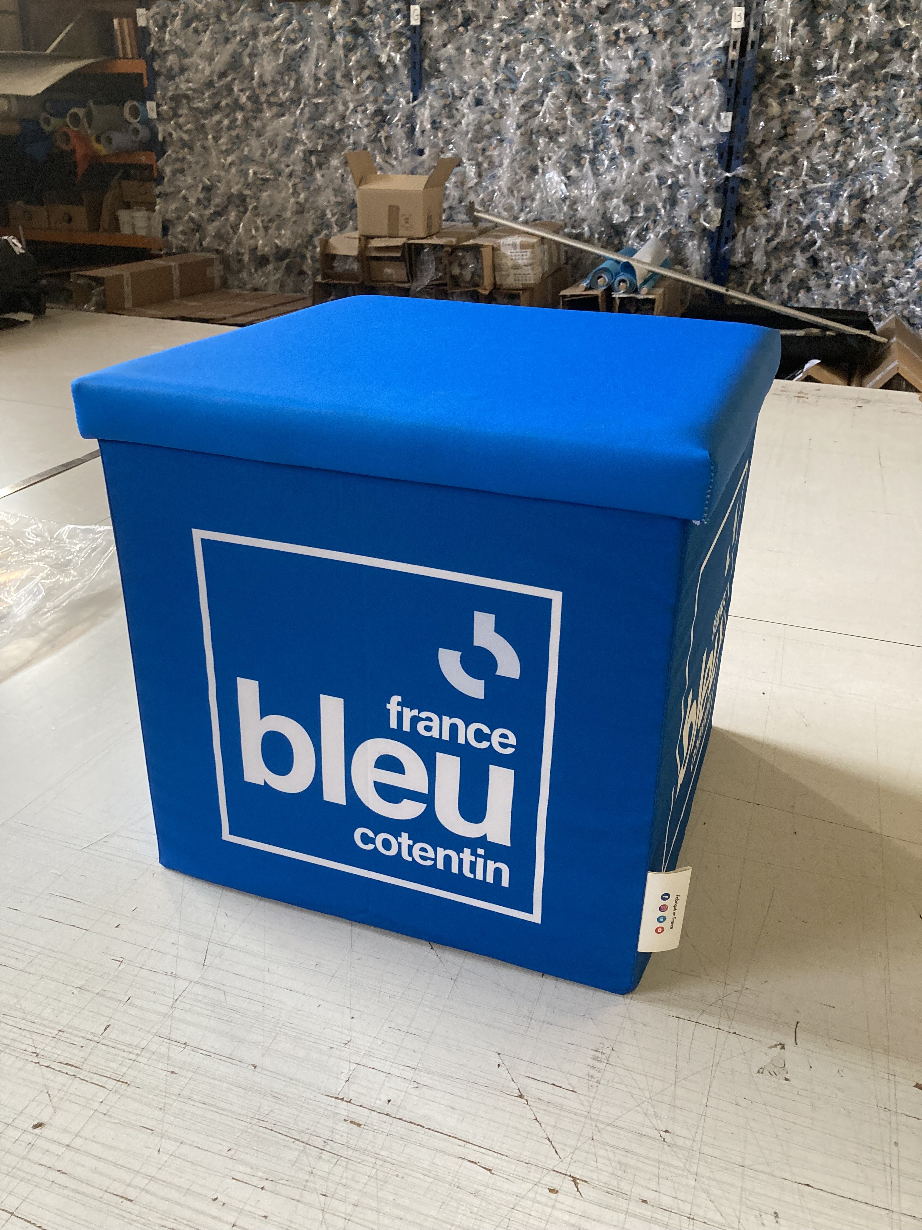 Le cube pliable personnalisable est un élément de mobilier que vous pourrez utiliser lors de vos salons ou pour vos magasins par exemple.