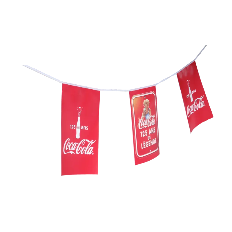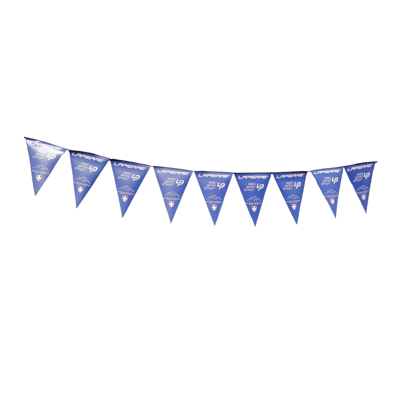 La guirlande à fanions est un support de communication permettant d’animer idéalement votre stand lors d’un salon, ou encore votre espace de vente. Elle peut être imprimée sur différents textiles ou PVC, en sérigraphie ou en impression numérique et sur l’une ou ses deux faces. Idéale pour animer un espace, la guirlande à fanions pourra être coupée à la forme désirée, afin de convenir aux besoins de tous. Ce produit n’a pas de taille standard, et pourra être à la forme de votre choix.