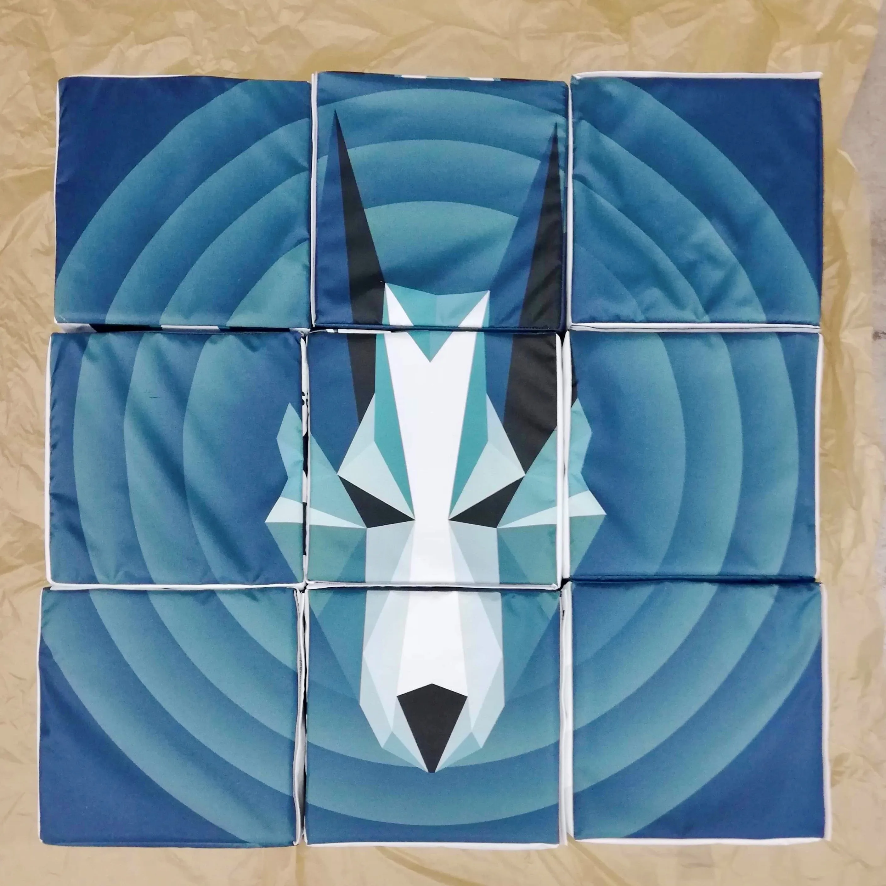 Le puzzle géant en mousse est un support de communication ludique, qui habillera votre espace dans un salon, votre espace pour enfants, ou votre point de vente. La structure de ce puzzle est composée de cubes en mousse de 30 centimètres de côté au minimum. Ces cubes seront habillés d’une housse en PVC ou en textile imprimée en numérique ou par sublimation. Le puzzle géant est un mur d’image ludique à composer soi-même. Les visuels de chaque cube seront différents, afin de faire apparaître différentes solutions de montage. Ce support de communication est 100% personnalisable selon vos projets et vos besoins.
