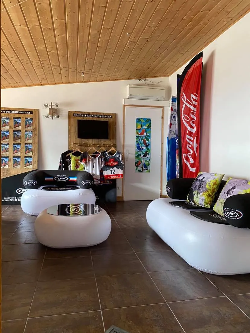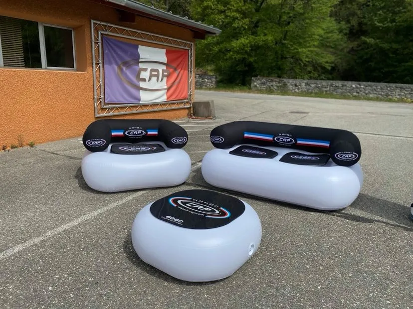 La table basse gonflable statique est un élément de mobilier confortable et facile de transport.