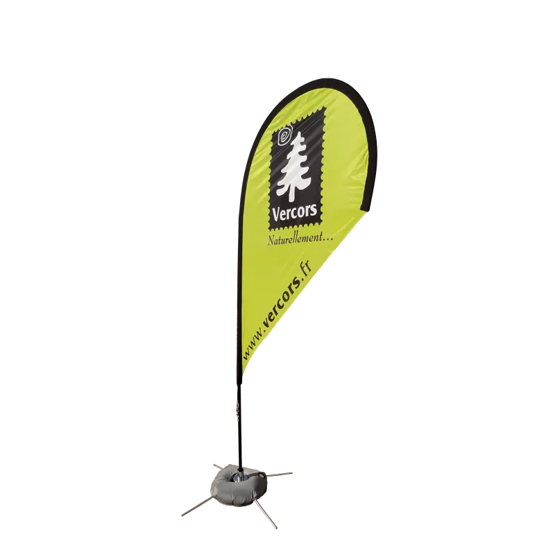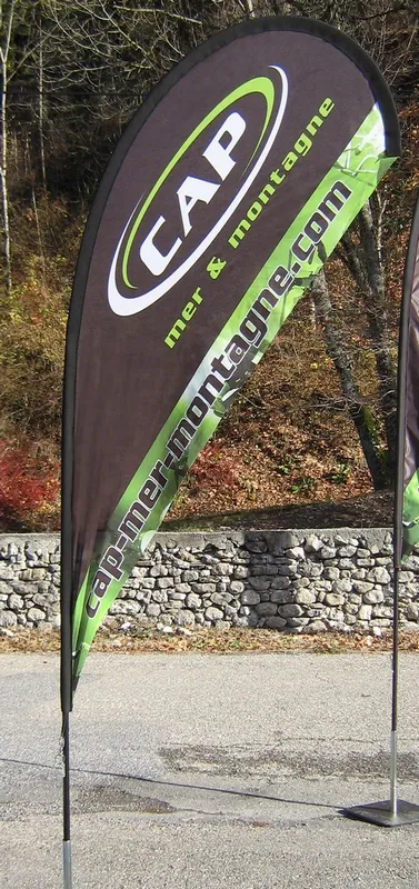 La voile Goutte 1 résistera à des conditions normales d’utilisation, grâce à son mât emboîtable en aluminium, qui la rend également pratique d’utilisation et à transporter. Cette oriflamme de 2,80 mètres sera vue de loin par le plus grand nombre et ses finitions lui confèrent le meilleur rapport qualité / prix. Idéale pour la devanture de votre magasin, elle pourra être imprimée sur différents textiles, sur l’une ou sur ses deux faces. Cette oriflamme, entièrement personnalisable, fait partie de la gamme Classique. CAP propose deux gammes de voiles selon vos besoins et vos projets : une gamme Classique et une gamme Extrême.